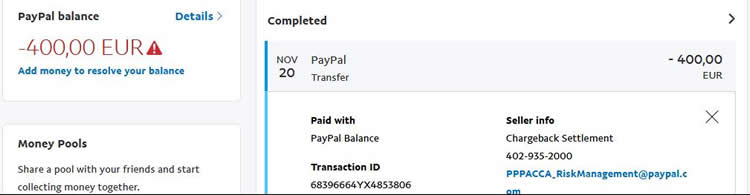 當(dāng)時在Paypal交易是因為不太信任paypal,所以收到后馬上把Paypal錢提到德意志銀行。后來付款人做了一個charge back,撤回付款,Paypal我的賬戶余額是-400歐元。