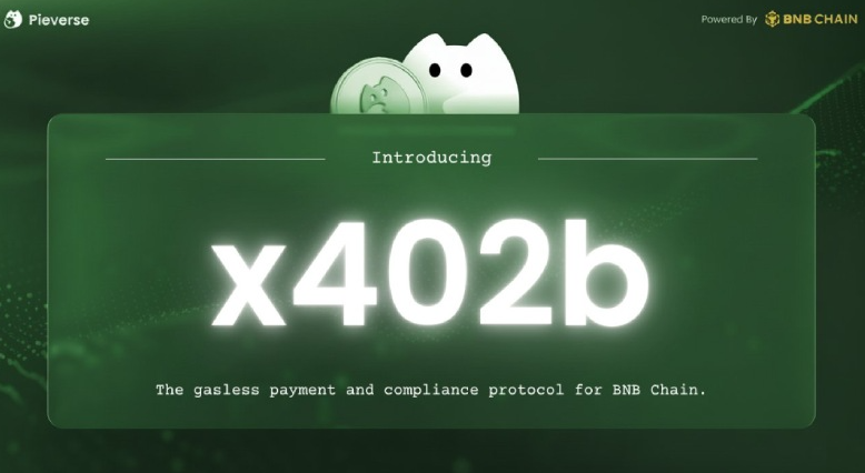 x402 是 AI 支付標(biāo)準(zhǔn)(由 LayerZero 與 Ansem 推動(dòng)),但 BNB Chain 不原生支持。Pieverse 推出的 x402b 是其 BNB Chain 適配版,核心創(chuàng)新在于零 Gas 費(fèi)(pieUSD 內(nèi)置)和鏈上時(shí)間戳(Timestamping)驗(yàn)證機(jī)制,實(shí)現(xiàn) 100% 可審計(jì)的收據(jù)透明度。
