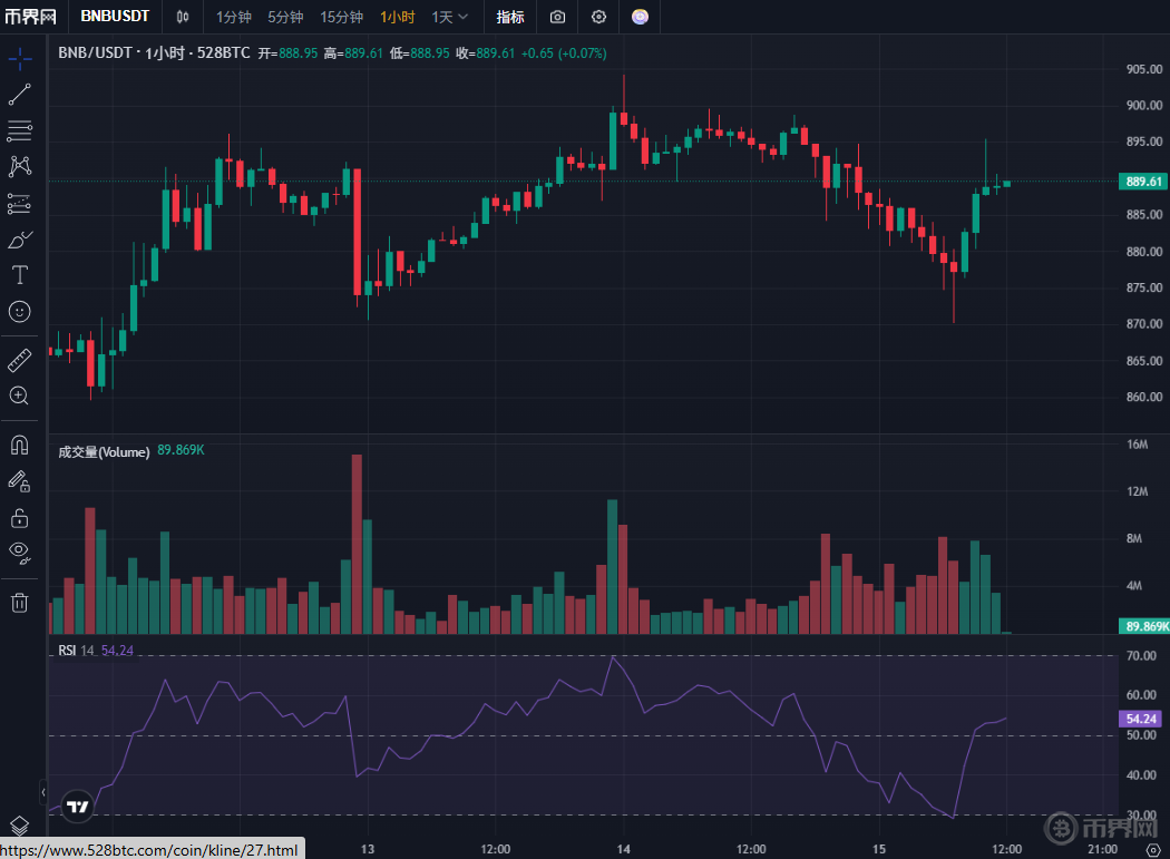 從幣界網技術分析角度看,BNB在2025年的走勢展現(xiàn)出強勁的動能,但也伴隨著顯著的波動。其在10月創(chuàng)下1370.55美元的歷史新高后,一度經歷了超過30%的劇烈回調,隨后在1000美元以上找到支撐并企穩(wěn)。