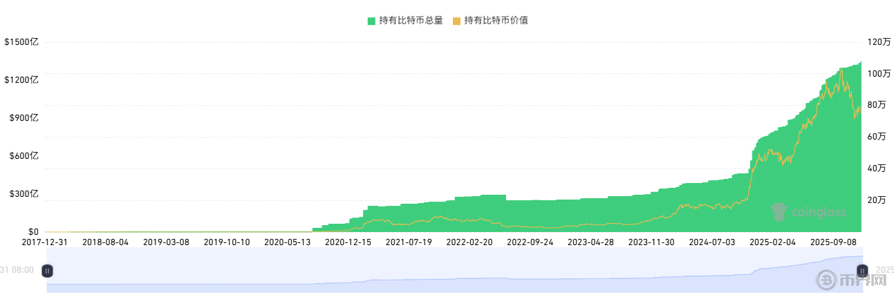 上市公司持有比特幣走勢,來源coinglass