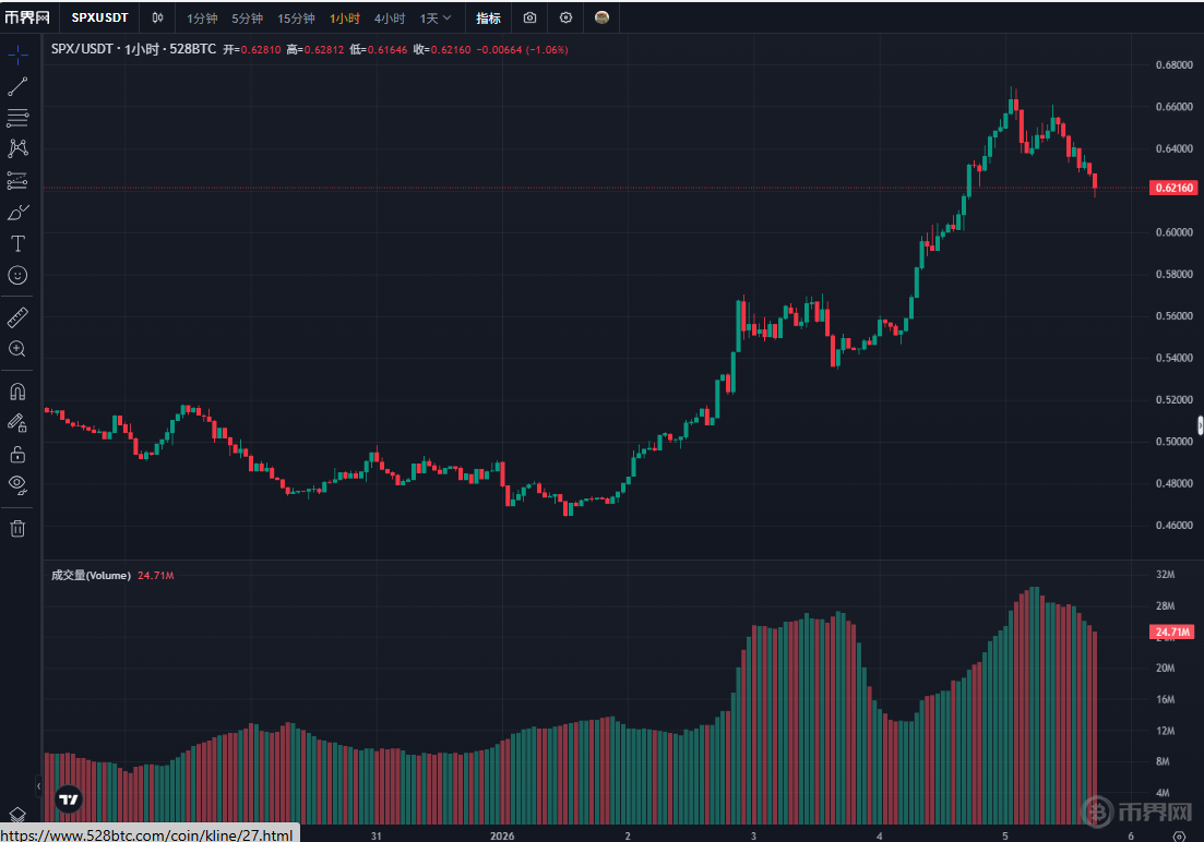1月5日SPX實(shí)時(shí)走勢(shì)及成交量,來(lái)源幣界網(wǎng)