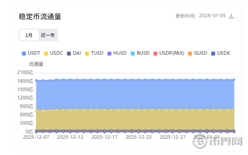 穩(wěn)定幣流通量,來(lái)源幣界網(wǎng)