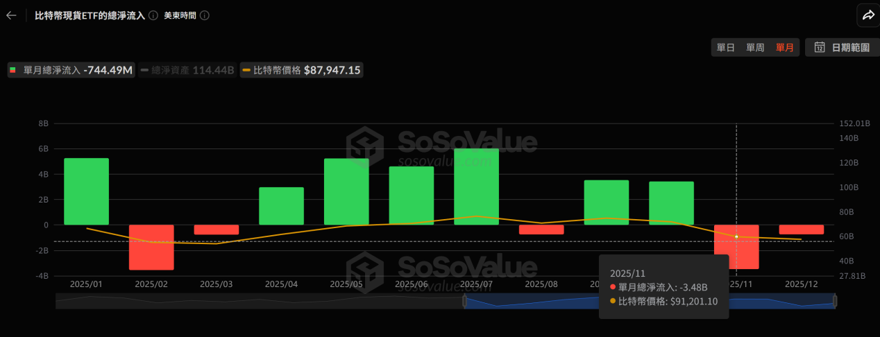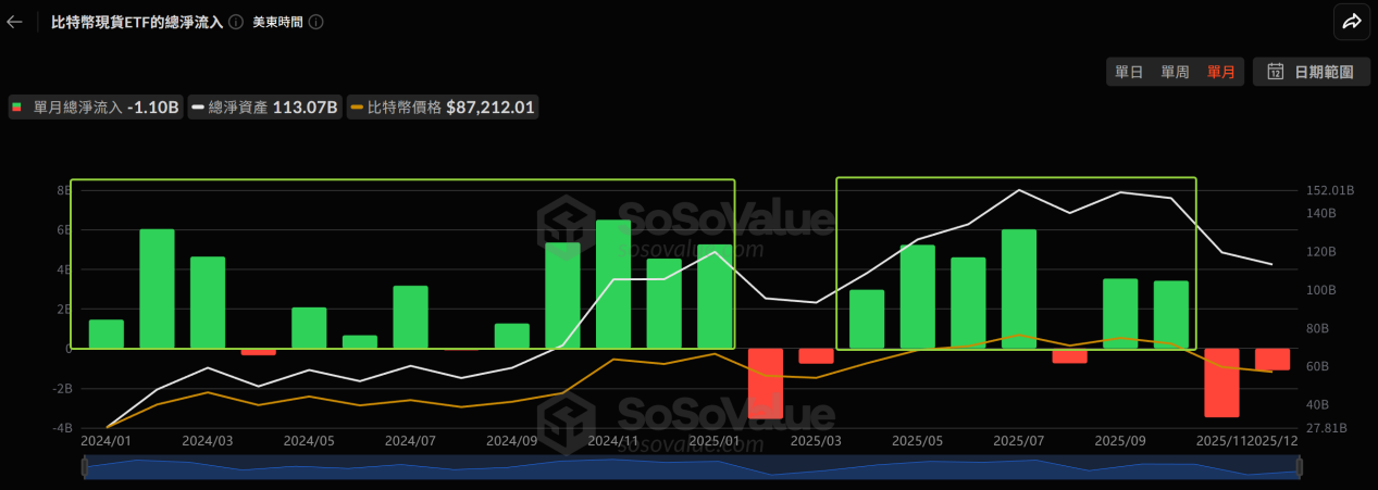 也因?yàn)槿绱?,比特幣能夠從幾萬美元一路推升至10萬美元以上,背后的動(dòng)力,始終都不是散戶的熱情,而是華爾街通過現(xiàn)貨ETF持續(xù)不斷注入的“真金白銀”。