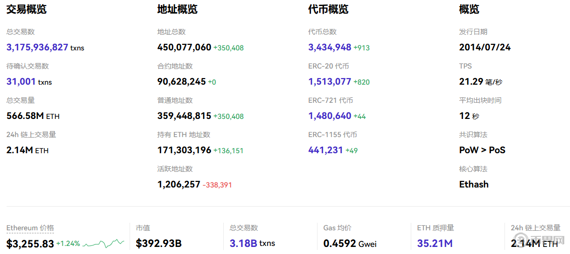 以太坊當(dāng)前交易概覽及質(zhì)押情況,來(lái)源OKLINK