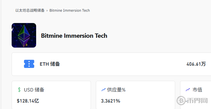 BitMine 以太坊儲(chǔ)備情況,來(lái)源coinglass