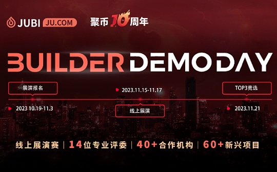 據(jù)官方消息,加密平臺聚幣將于11月13日至11月21日舉行“10周年慶活動”。周年活動包括漫畫講述品牌起源故事,平臺活動派送50000U以及召集了60+項目,40+合作機構(gòu)的“Builder Demo Day”項目展演賽。