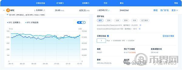 上面提到的算力就是比特幣礦機(jī)挖礦的能力,也就是每秒能做多少次哈希碰撞,目前算力的單位一般采用 TH/s,即每秒 10^12 次哈希,全網(wǎng)算力大約 630 EH/s,即每秒 6.3*10^20 次哈希,因此每 T 算力每天理論能挖到 8*10^(-7) 個(gè)比特幣。對(duì)于礦工來說,支出除了礦機(jī)購買、礦場運(yùn)營管理費(fèi)用外,其他主要就是挖礦的電費(fèi),以螞蟻 S19 pro 礦機(jī)為例,額定算力 110 T,額定功耗 3250 W,可以推算出每 T 算力每天耗電為 0.709 kW,不同國家地區(qū)電費(fèi)差異巨大,按照 0.055 u/kw 計(jì)算,一個(gè)比特幣成本在 5 萬美元左右。下圖是 F2Pool 的比特幣挖礦數(shù)據(jù),跟筆者的估算基本一致。