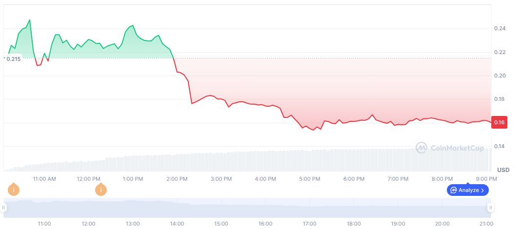 根據(jù) CoinMarketCap 的數(shù)據(jù),這款售價(jià) 42 美元的代幣目前價(jià)值 0.16 美元,市值為 23,862,319 美元。近期數(shù)據(jù)顯示,其市場(chǎng)表現(xiàn)在不同時(shí)間段內(nèi)下跌了 47.34%,值得潛在投資者關(guān)注。