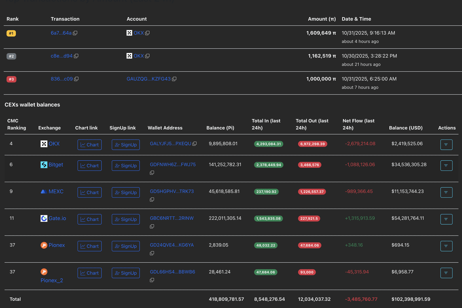 PiScan 數(shù)據(jù)顯示,過去 24 小時(shí)內(nèi),CEX 錢包余額凈流出 348 萬個(gè) PI 代幣,表明交易所內(nèi)的需求正在增加。