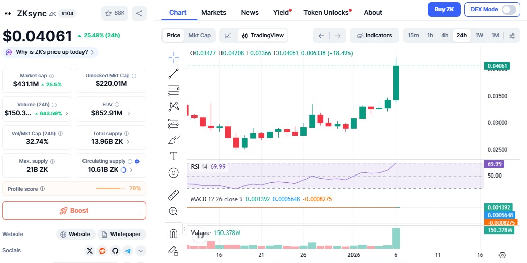 今天加密貨幣市場整體走勢平淡,為什么ZKsync卻逆勢上漲?這是許多交易者因ZKsync價格今日突然飆升而提出的問題。