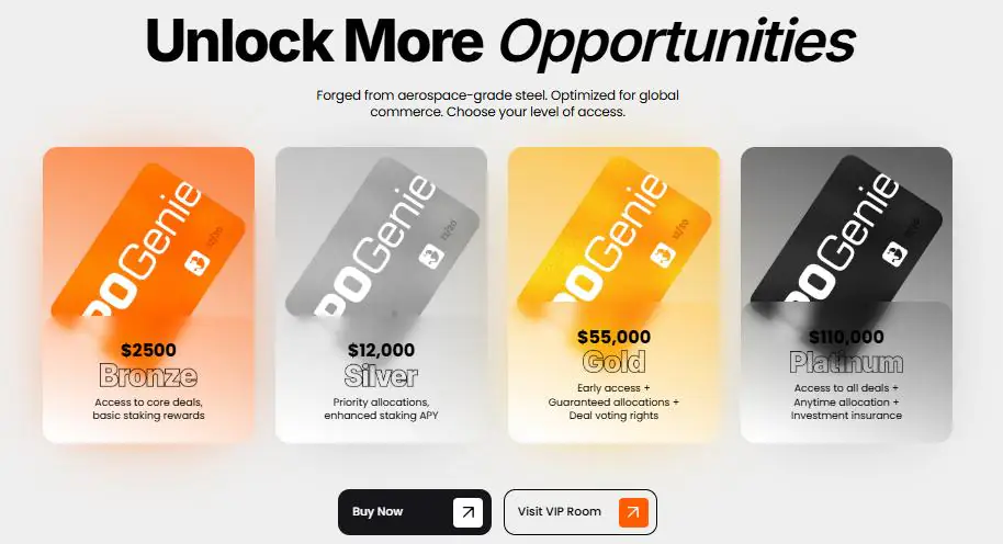IPO Genie 通過分級系統(tǒng)構建參與機制,獎勵持有較大股份的股東,同時將準入門檻大幅降低,遠低于傳統(tǒng)風險投資: