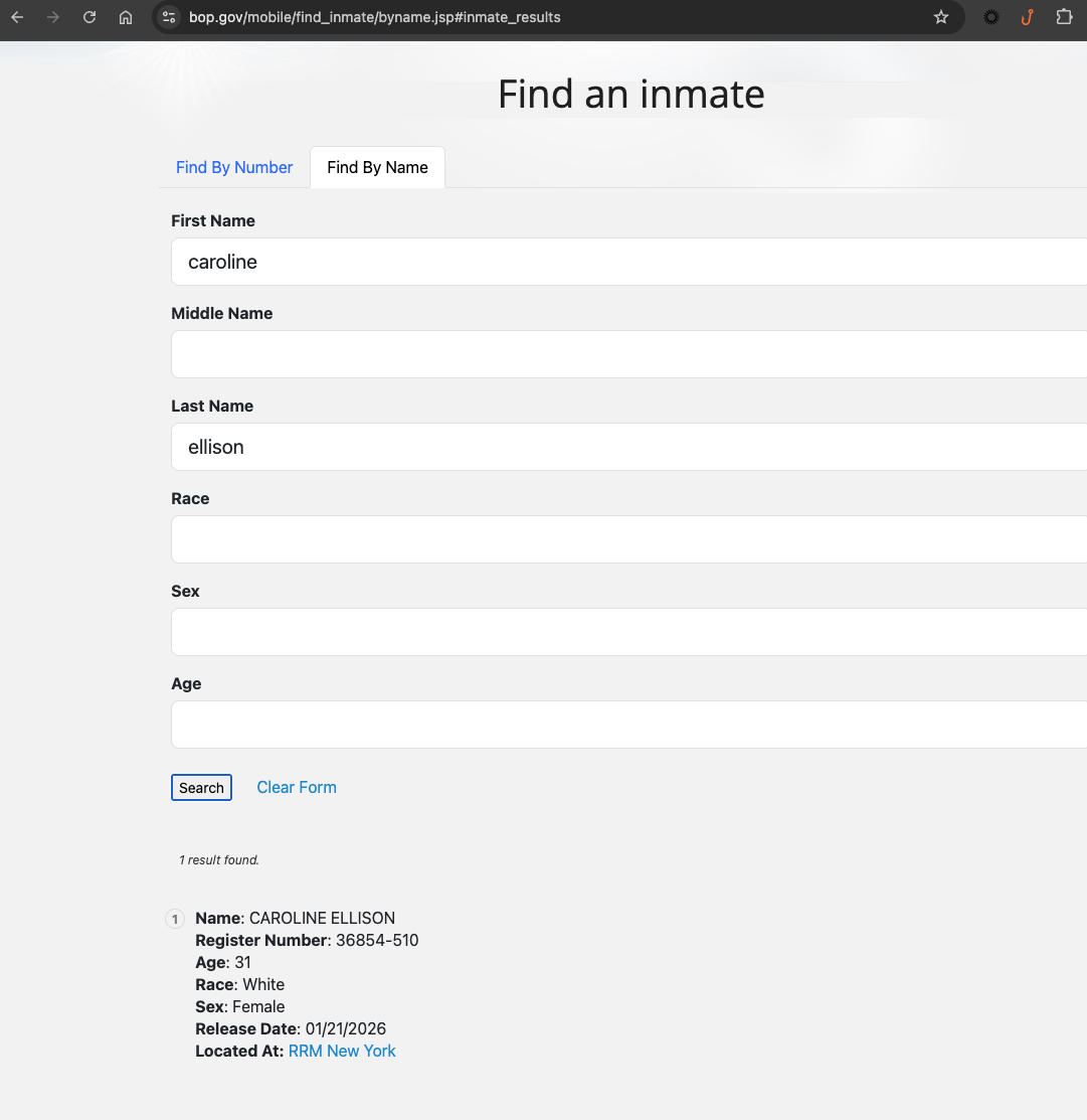 埃里森獲釋與班克曼-弗里德的 25 年刑期形成鮮明對(duì)比,他目前正在洛杉磯地區(qū)的一所低安全級(jí)別的聯(lián)邦監(jiān)獄服刑。