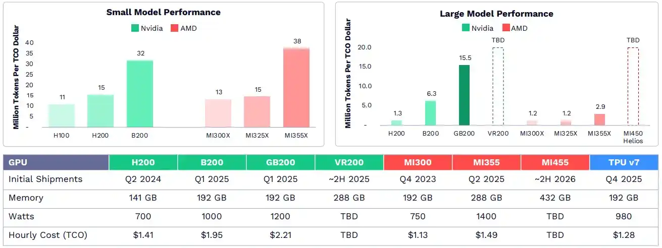 英偉達(dá)早期在 AI 芯片設(shè)計(jì)、軟件和網(wǎng)絡(luò)方面的投資,使其圖形處理器(GPU)的市場份額達(dá)到 85%,毛利率達(dá)到 75%。如今,像 AMD 和谷歌這樣的競爭對手在某些領(lǐng)域,如小型語言模型推理方面已經(jīng)迎頭趕上。英偉達(dá)的 Grace Blackwell 機(jī)架式系統(tǒng)在大型模型推理方面處于領(lǐng)先地位,為最先進(jìn)的基礎(chǔ)模型提供支持。