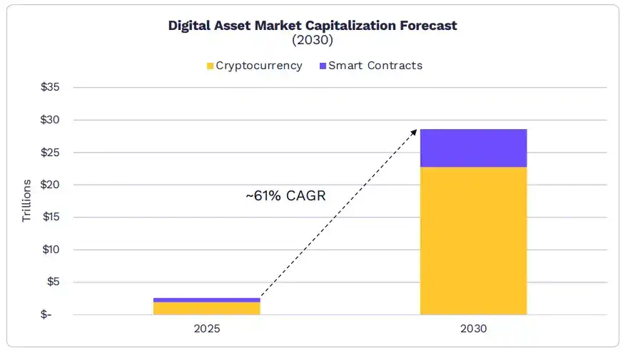 數(shù)字資產(chǎn)市值到 2030 年可能達(dá)到 28 萬億美元。