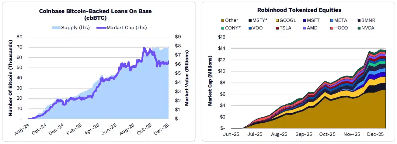 傳統(tǒng)企業(yè)正通過構(gòu)建自有基礎(chǔ)設(shè)施來擴(kuò)大其在鏈上的影響力。傳統(tǒng)企業(yè)正在構(gòu)建其自有的鏈上基礎(chǔ)設(shè)施。Circle(Arc)、Coinbase(Base,cbBTC)、Kraken(Ink)、OKX(X Layer)、Robinhood(Robinhood Chain)和 Stripe(Tempo)正在推出公司自有品牌的 L1/L2 網(wǎng)絡(luò),以支持其自身產(chǎn)品,例如比特幣抵押貸款、代幣化股票和 ETF,以及基于穩(wěn)定幣的支付渠道。