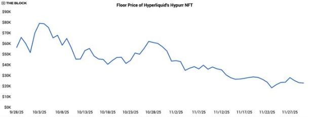 Hypurr 根據(jù)資格規(guī)則分發(fā)給 Hyperliquid 社區(qū)成員,旨在獎勵那些在 2024 年 11 月平臺代幣正式發(fā)行前就積極參與交易的用戶。在二級市場,它的初始底價超過 5.5 萬美元,歷史最高價曾達約 7.9 萬美元,隨后逐漸回落至 2.8 萬美元左右。