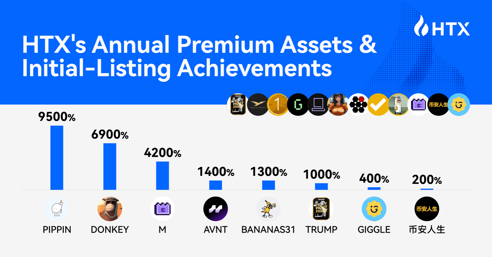 根據(jù)HTX的年度報告,交易所新增166個加密貨幣2025年全年,HTX的資產(chǎn)策略始終專注于那些具有強(qiáng)勁發(fā)展勢頭、社區(qū)共鳴和長期價值潛力的項目。2025年,這一策略轉(zhuǎn)化為多個具有重大影響力的首次上市項目,其中包括:皮平(95倍)驢(69x),M(42倍),以及王牌(10倍)