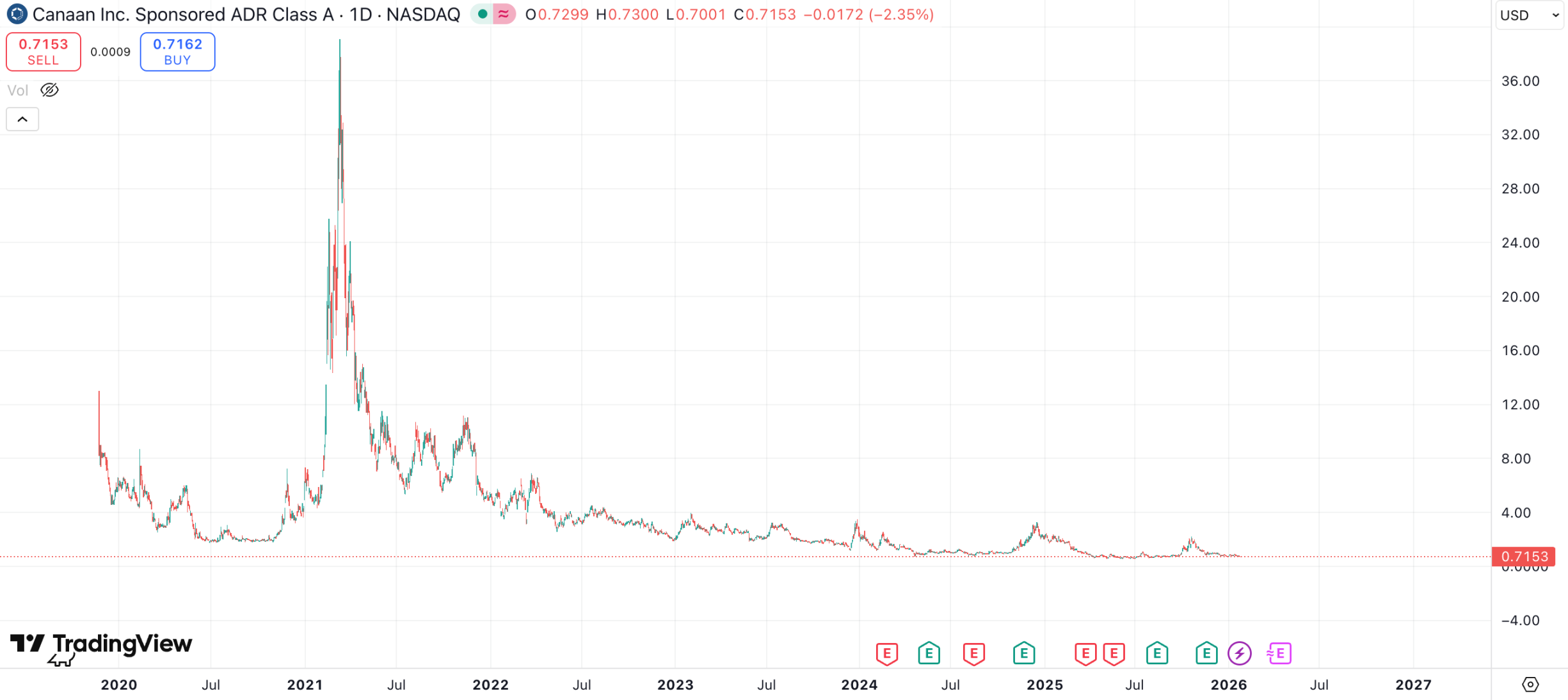 2026 年 1 月 16 日,嘉楠科技發(fā)布公告稱(chēng)于 1 月 14 日收到了納斯達(dá)克交易所發(fā)出的通知。通知顯示,因嘉楠科技股價(jià)在過(guò)去 30 個(gè)交易日收盤(pán)價(jià)均低于 1 美元而被警告。根據(jù)納斯達(dá)克上市規(guī)則,若嘉楠科技不能在 180 天內(nèi)(2026 年 7 月 13 日之前)讓股價(jià)回到 1 美元或以上則可能面臨被摘牌。