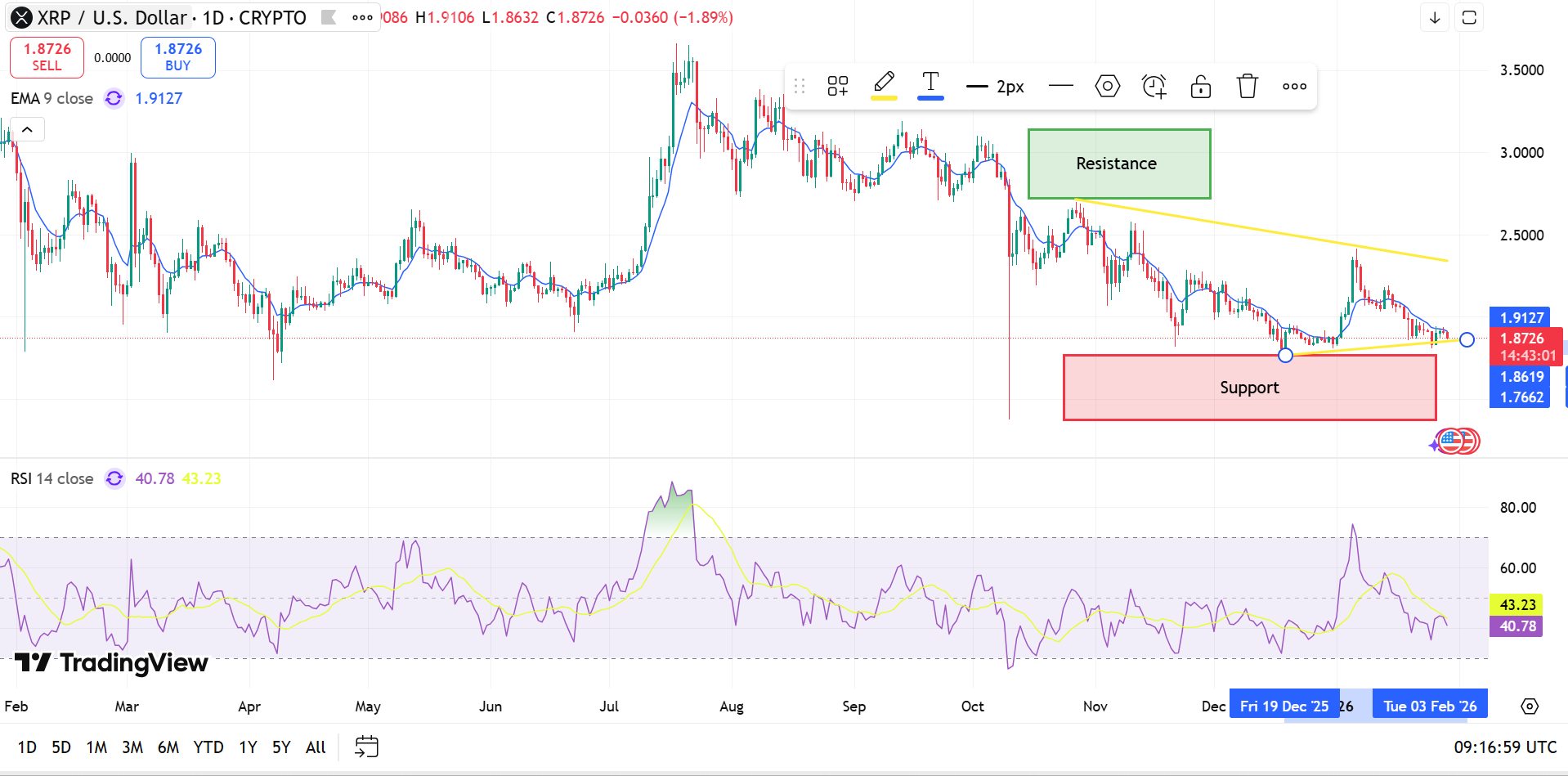 支撐位和阻力位影響 XRP 價格預(yù)測