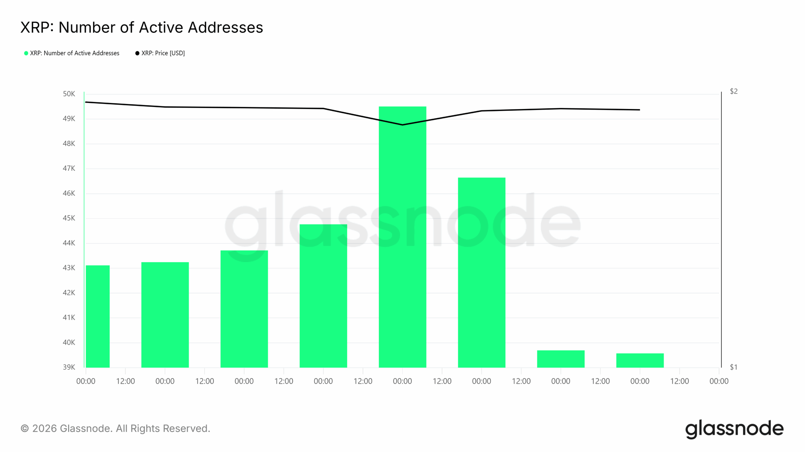 XRP網(wǎng)絡(luò)的參與度指標(biāo)顯示出顯著的變化。活躍地址數(shù)量在報告期初期呈上升趨勢,隨后顯著下降。