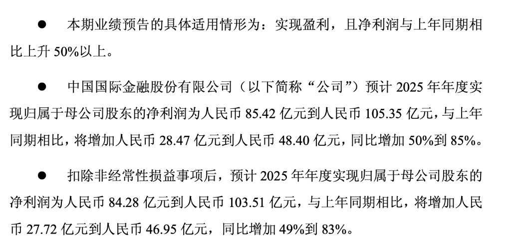 1月30日,中金公司發(fā)布2025年年度業(yè)績(jī)預(yù)增報(bào)告,核心亮點(diǎn)如下: