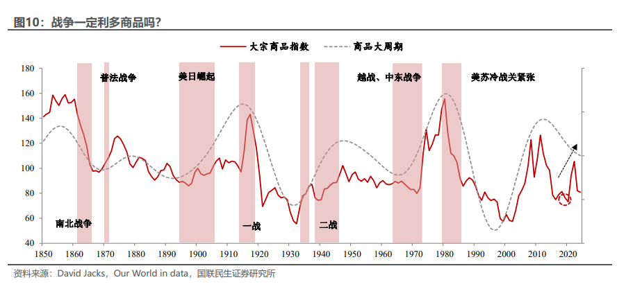 報告明確指出一個容易被誤解的事實:戰(zhàn)爭不一定推升商品價格,甚至可能壓制商品。