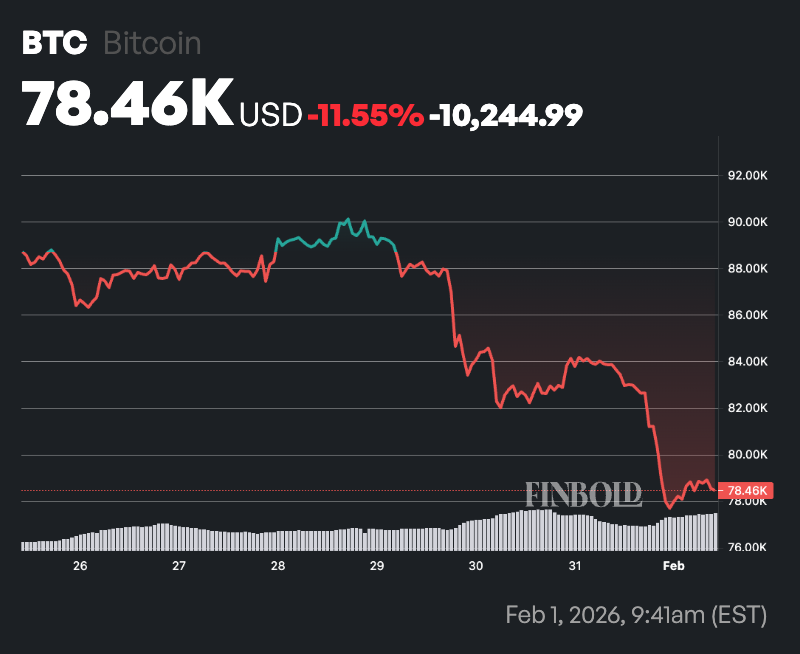 截至發(fā)稿時,比特幣價值為 78,461 美元,過去 24 小時內(nèi)下跌超過 6%。按周計算,加密貨幣已修正超過 11%。