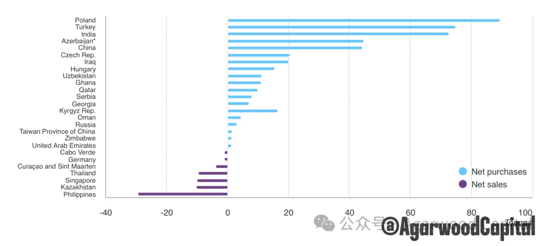 圖 2:2024年按國別央行凈購(售)金對比圖