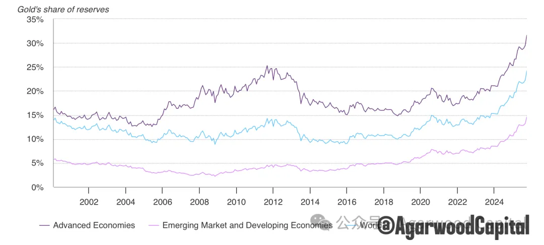 ? 儲備組合從「貨幣內(nèi)部多元化」進(jìn)一步轉(zhuǎn)向「從主權(quán)負(fù)債類向非信用資產(chǎn)多元化」
