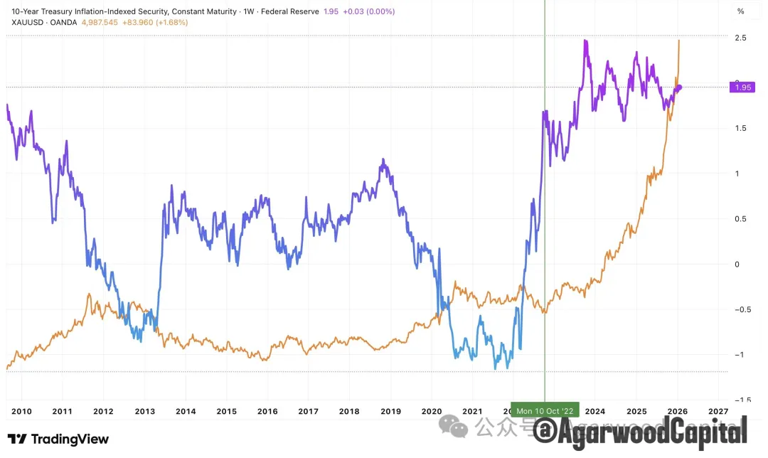因此在三到五年的視角中,實(shí)質(zhì)利率更適合作為「黃金在通道中處在折價或溢價狀態(tài)」的判斷工具,以及波段節(jié)奏的調(diào)節(jié)因子。