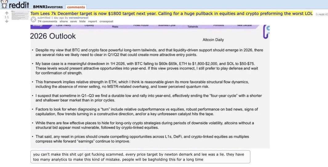盡管外界憂慮甚多,但ETH當前跌勢仍與BitMine董事長兼Fundstrat Global Advisors聯(lián)合創(chuàng)始人Tom Lee的分析一致。