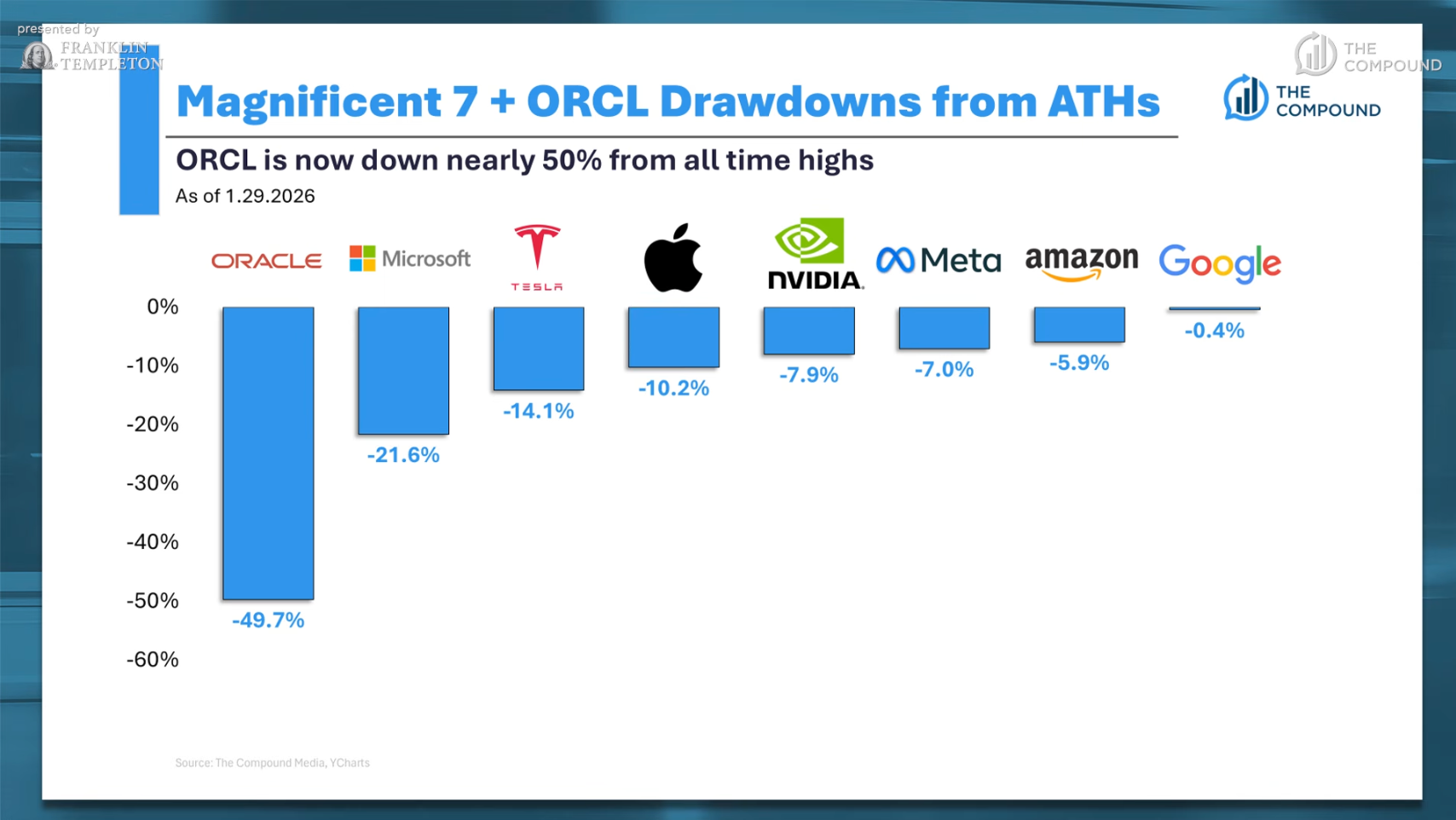 Josh Brown:你是否認(rèn)為市場(chǎng)的調(diào)整正在悄然發(fā)生?比如 Oracle 的股價(jià)已經(jīng)減半,Microsoft 進(jìn)入了熊市,Tesla 下跌了 14%,Apple 下跌了 10%。這些變化是否意味著市場(chǎng)正在分化?未來(lái)的市場(chǎng)是否還需要依賴“七大科技股”(Mag 7)來(lái)推動(dòng)新一輪的上漲?