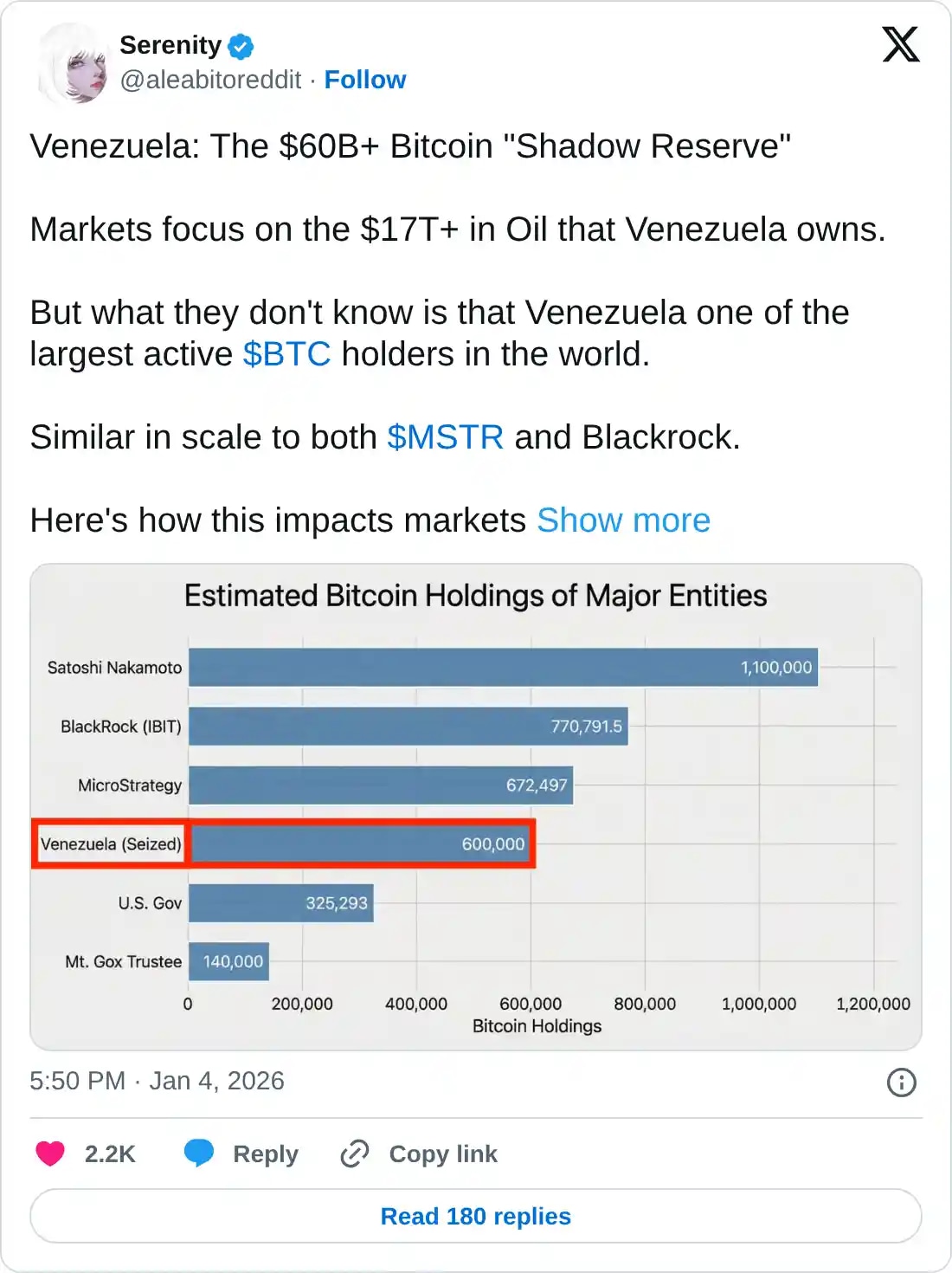 如果美國(guó)戰(zhàn)略比特幣儲(chǔ)備吸收或凍結(jié)委內(nèi)瑞拉持有的比特幣,將有效減少供應(yīng),導(dǎo)致需求[激增]。市場(chǎng)的持續(xù)復(fù)蘇反映了市場(chǎng)對(duì)潛在供應(yīng)減少的預(yù)期。