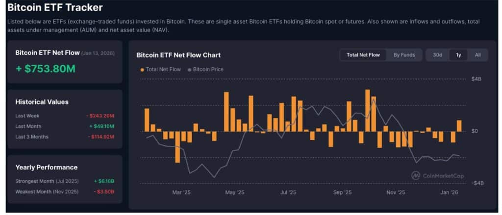 機構(gòu)投資者的長期持有行為也出現(xiàn)了大幅增長。在積極的企業(yè)增持策略的推動下,機構(gòu)投資者正將資金大量涌入ETF網(wǎng)絡(luò),其信念與存量流量比理論不謀而合。這一趨勢體現(xiàn)在本周單日ETF資金流入高達7.5億美元,創(chuàng)下自2025年10月以來的最高紀(jì)錄。