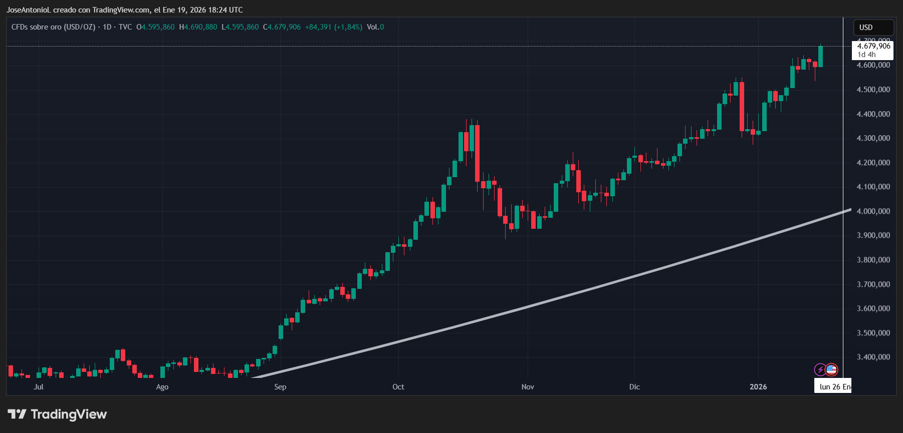 此次回調(diào)正值市場(chǎng)整體避險(xiǎn)情緒升溫之際。特朗普總統(tǒng)新關(guān)稅歐洲國(guó)家對(duì)他的政府追求格陵蘭島的舉動(dòng)感到恐慌,導(dǎo)致投資者將資金涌向黃金等避險(xiǎn)資產(chǎn),金價(jià)創(chuàng)下每盎司 4,680 美元的新紀(jì)錄。