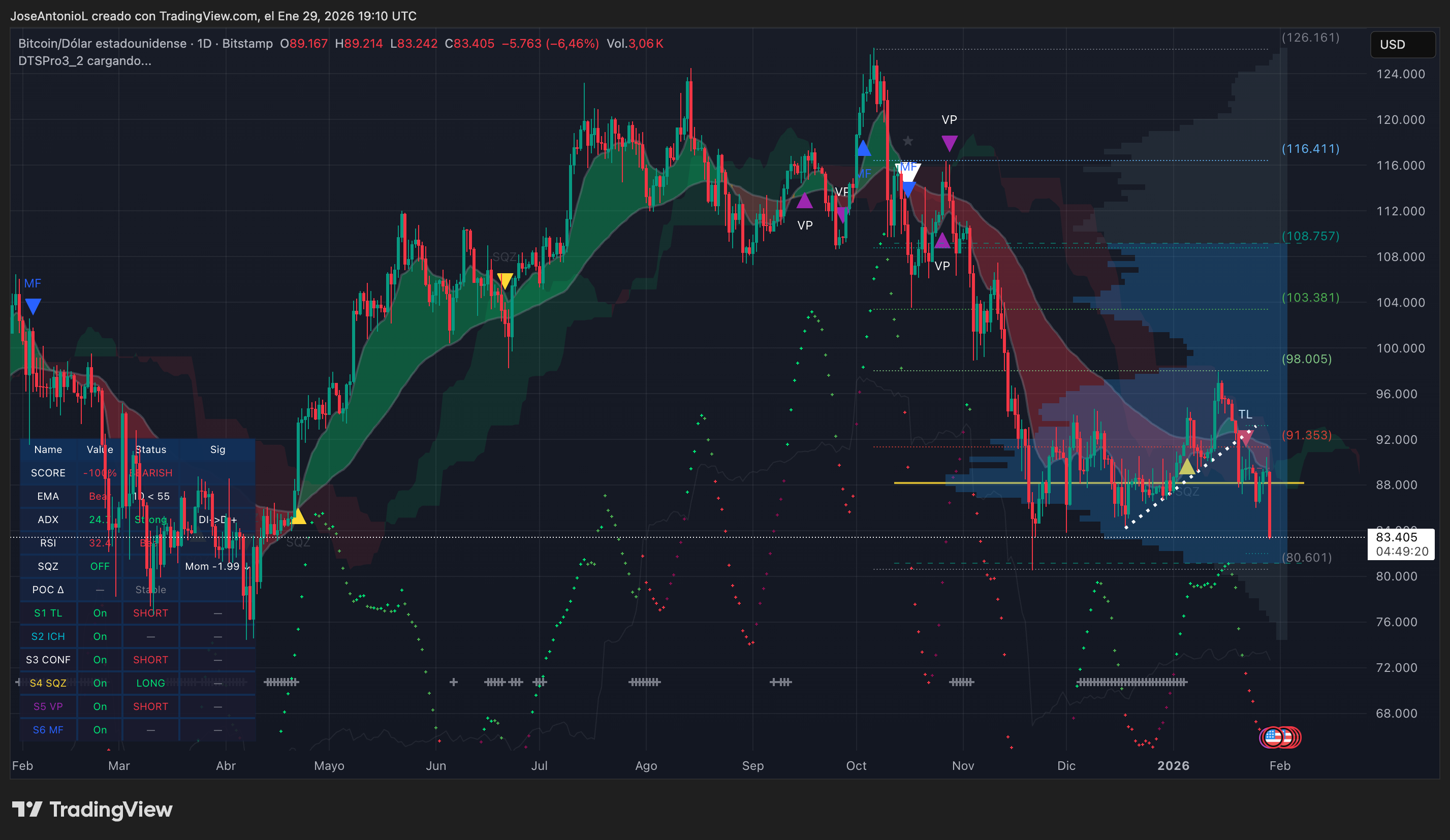 比特幣近期交易價格為 83,405 美元,較昨日下跌 6.46%,即 5,763 美元。自 1 月份接近 97,000 美元的高點以來,比特幣價格一路下跌,跌破了多個支撐區(qū)域,技術(shù)面顯示跌勢尚未結(jié)束。
