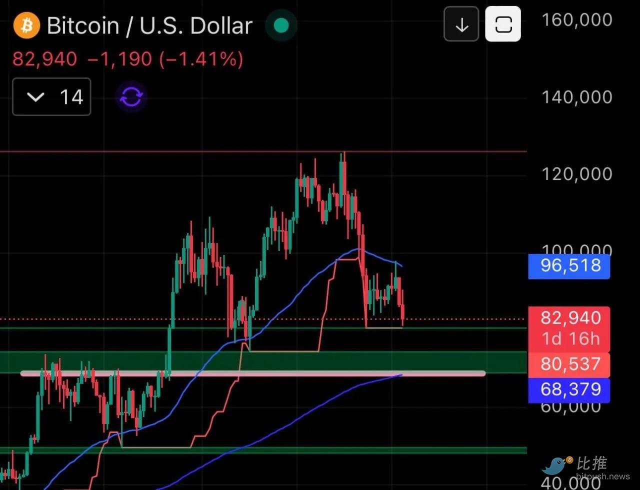 支撐線崩潰:比特幣跌破了自2025年12月底以來一直維持的上升支撐趨勢線。一旦跌破,原本密集的支撐區(qū)間($82,000 – $86,000)瞬間轉(zhuǎn)化為沉重的上方阻力。