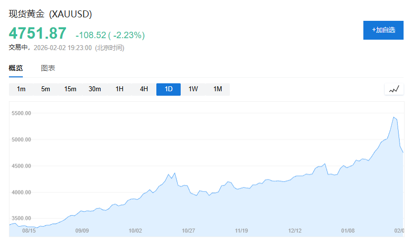 一些交易員表示,此前的漲勢(shì)已經(jīng)走得太遠(yuǎn)、太快,隨后出現(xiàn)了戲劇性的反轉(zhuǎn)。僅僅兩個(gè)交易日,現(xiàn)貨黃金一度暴跌1000美元,最低逼近4400美元關(guān)口。