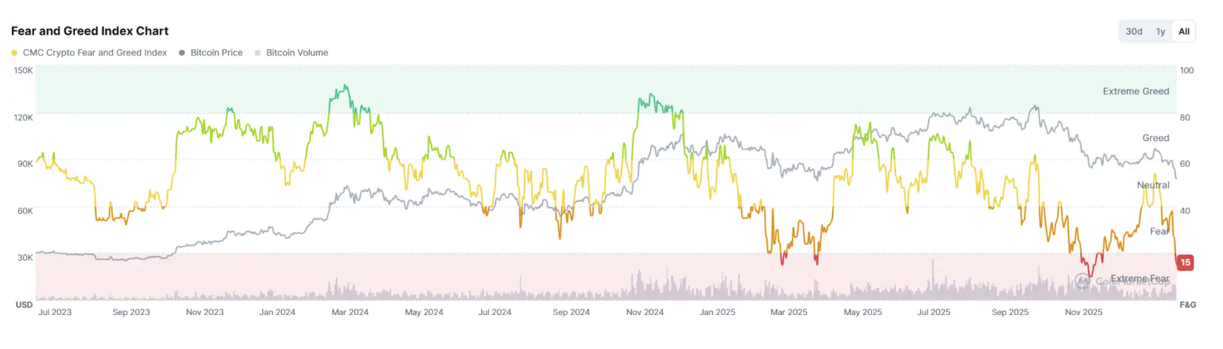 市場恐慌指數(shù) 15,市場情緒再次陷入極度恐慌。