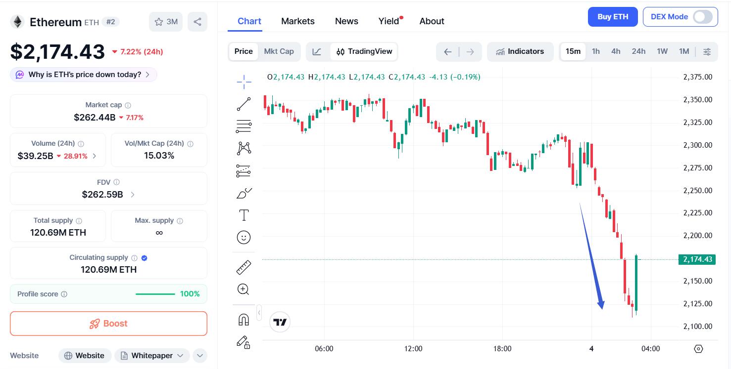 市值僅次于比特幣的第二大加密貨幣以太坊跌勢更猛,美股午盤曾跌破2110美元,刷新2025年5月以來低位,較亞市早盤2350美元上方的日高跌去略超10%。