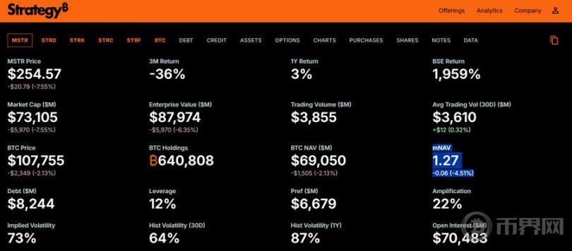 Bitcoin NAV:公司持有的比特幣市值(當(dāng)前約 64 萬(wàn)枚 BTC,價(jià)值超 700 億美元)。