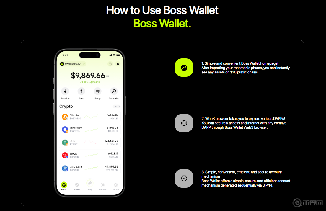 BOSS Wallet致力于成為您的數(shù)字資產(chǎn)管理中心,提供一站式Web3入口。