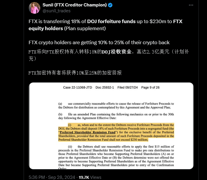 FTX曾是加密貨幣交易所領(lǐng)域的巨頭,卻在2022年底突然崩塌,給投資者和客戶造成了巨大的財務(wù)損失。FTX將把美國司法部沒收的18%資金,轉(zhuǎn)入一個特殊的“優(yōu)先股股東豁免基金”,這個計劃本應(yīng)提供一個復(fù)蘇的路線圖,但卻因多次修訂和挫折而陷入困境,使利益相關(guān)者處于不確定的狀態(tài)。從今日公布的最新賠償計劃來看,F(xiàn)TX加密持有人預(yù)計只能收回其損失資產(chǎn)的10-25%,令那些損失慘重的投資人感覺反復(fù)被騙。