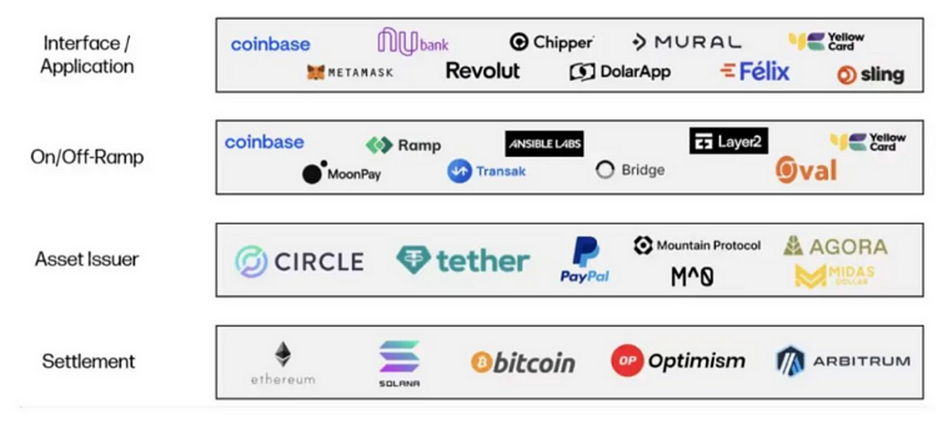 按照 Galaxy Ventures 的研究,Web3 支付賽道的參與者從技術(shù)棧的角度可分為 4 類: