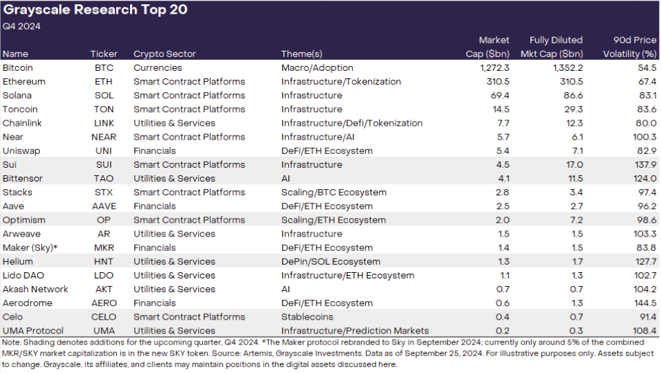與此同時(shí),灰度在最新報(bào)告中披露了2024年末有望大漲的20大加密貨幣,引發(fā)機(jī)構(gòu)投資者廣泛關(guān)注。盡管灰度提醒這些資產(chǎn)仍具有較高波動(dòng)性,不適合普通投資者,但其參考價(jià)值不容忽視。