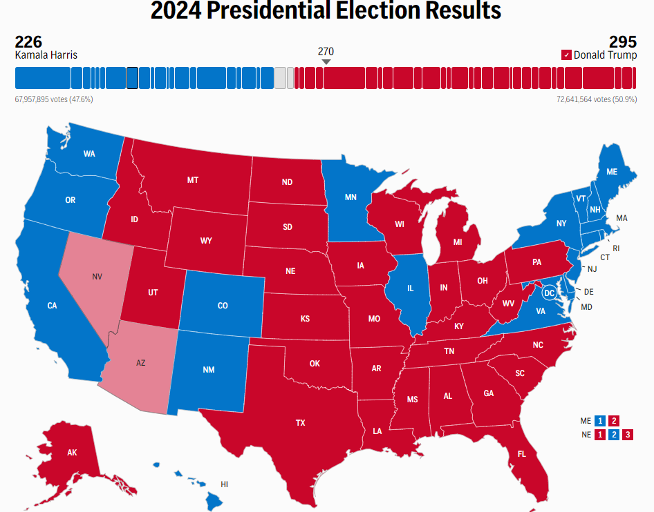 美國(guó)總統(tǒng)大選塵埃落定——據(jù)美聯(lián)社公布的最終統(tǒng)計(jì),唐納德·特朗普以 295 票優(yōu)勢(shì)擊敗卡馬拉·哈里斯——為數(shù)字貨幣領(lǐng)域開啟了新紀(jì)元。