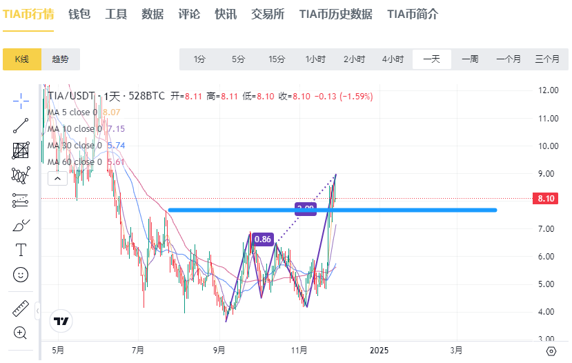 Celestia(TIA):已經(jīng)突破整理區(qū)間