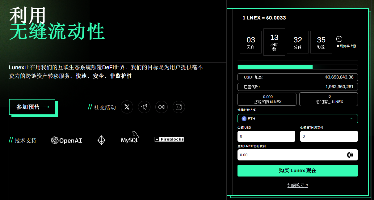 3. 機(jī)構(gòu)解決方案:B2B 支付網(wǎng)關(guān)讓企業(yè)能夠無縫接受加密支付并轉(zhuǎn)換為法定貨幣。 市場反響與預(yù)售成果 項(xiàng)目原生代幣 $LNEX 預(yù)售價(jià)格為 0.0031 美元,已籌集超過 300 萬美元。早期投資者保持樂觀,分析師預(yù)期上線后可能實(shí)現(xiàn) 1,800% 增長。